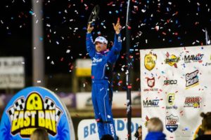 (TAMPA, FL - February 6, 2019) - The defending Lucas Oil Late Model Dirt Series National Champion, Jonathan Davenport survived a torrid battle with Brandon Sheppard to register his first series win of 2019 on Wednesday night at East Bay Raceway Park.