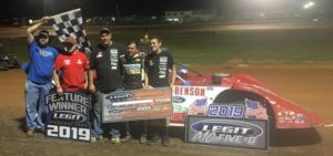(DUNN, NC - May 27, 2019) – The Big River Steel / GETSCO / Dunn Benson Motorsports Team with driver Devin Moran earned their first victory of 2019 at Legit Speedway Park in West Plains, MO this past Saturday. Devin started 6th in the 50-lap feature and charged to the front taking the lead on lap 41 and holding off Hall of Famer Billy Moyer for the $3,000 payday. The win Saturday was the first victory for the Dunn Benson Motorsports Team with Devin Moran as their driver in 2019. The Team also competed on Friday Night at Legit Speedway Park in a 25-Lap feature event with Devin starting 16th and finishing 8th.