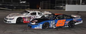 Closing out the evening of racing would be the Street Stocks and their 30 lap feature. Mark Whitten in the #77 would take pole position in qualifying with Jonathon Smith in the #16 starting to his outside. Whitten would take the early lead. Smith would come roaring back to take the lead away from Whitten on lap two. Drew Cox in the #21 would start sixth but move to second on lap seven and start working his way towards the leader, Smith. Whitten, Kevin Eby in the #03, and Jesse Clark in the #5 would have a spirited battle for third. Eby would take spot with Whitten moving to fourth. Cox would move to within a couple of car lengths with three laps to go when Smith would suddenly slow and pull to the pits. Cox would drive on to the win. Eby would finish 2nd and Whitten would take 3rd. Clark would get 4th and Derek Fowler in the #31 would finish 5th.