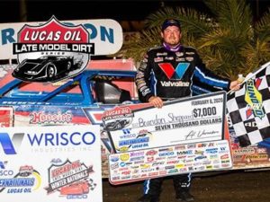 (TAMPA, FL - February 6, 2020)- Brandon Sheppard charged from his 12th starting spot to take the lead on lap 14 and never looked back in claiming his second Wrisco Industries Winternationals victory of the week on Thursday Night at East Bay Raceway Park in the Lucas Oil Late Model Dirt Series-sanctioned event.