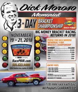(Jupiter, FL - September 12, 2018) — Palm Beach International Raceway (PBIR) announced that Sunoco Race Fuels is the presenting sponsor of the Dick Moroso Memorial 3-Day Bracket Championship November 19-21.